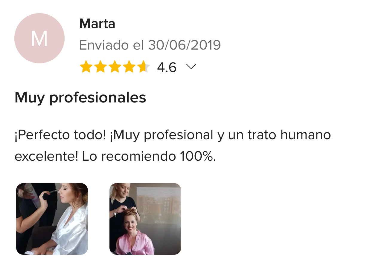 - Servicio a domicilio: Con servicio a domicilio incluido, tanto en pruebas como en el día de la boda en Madrid. Para otras localizaciones consultar según kilometraje. Con opción de hacer las pruebas en local.